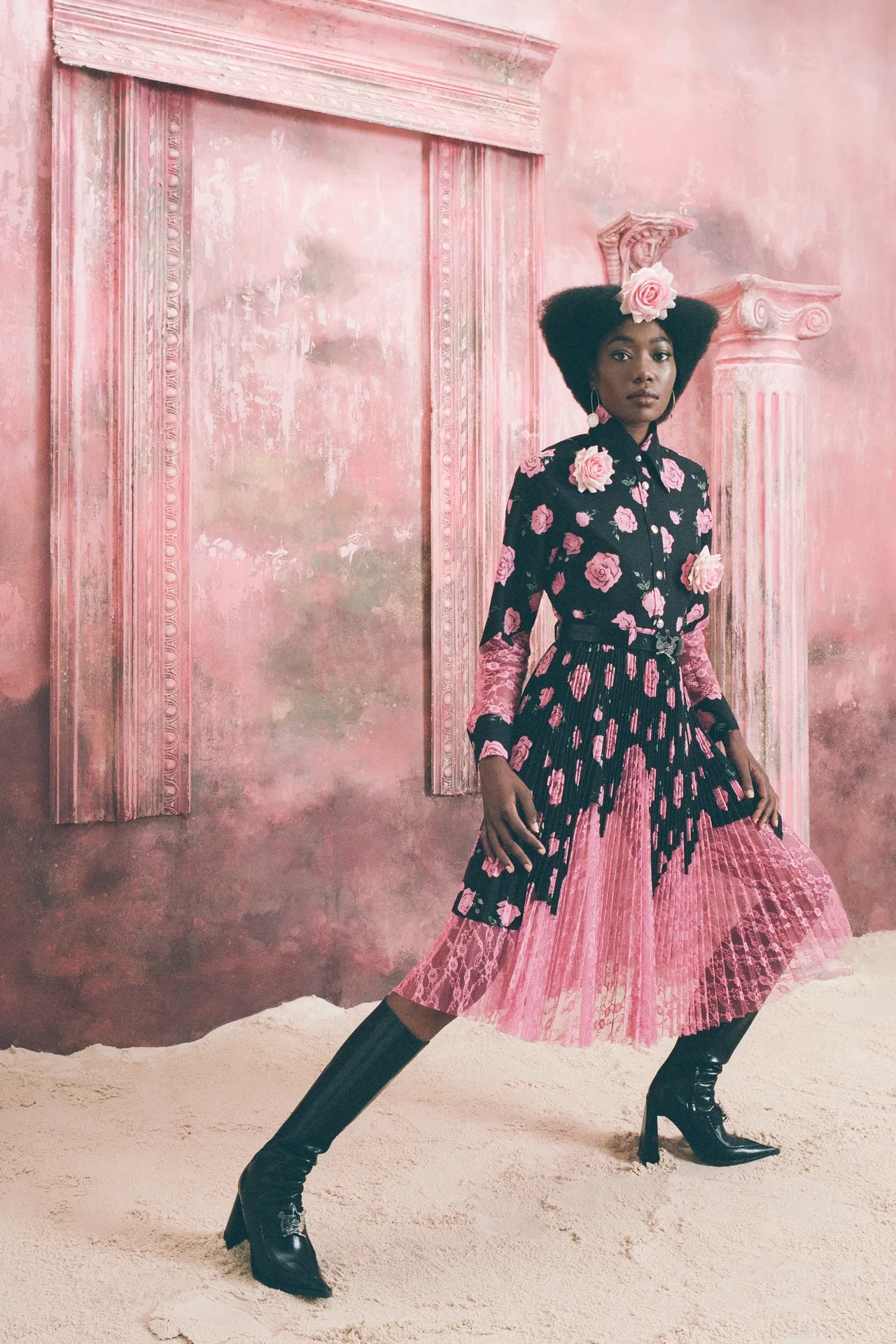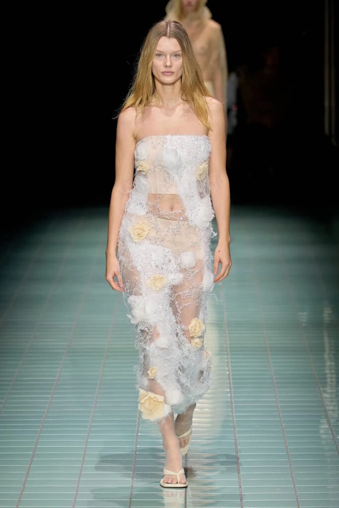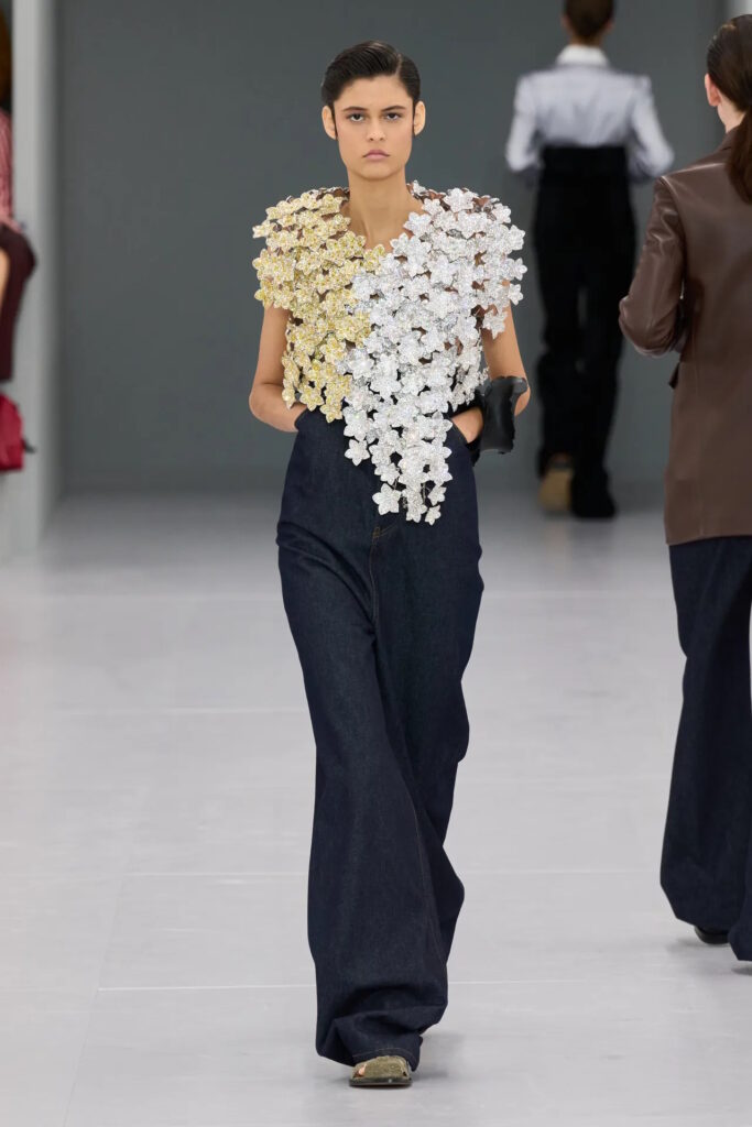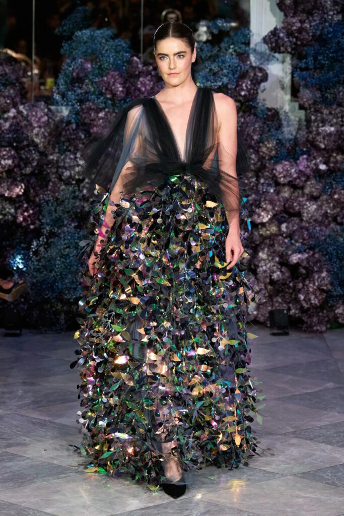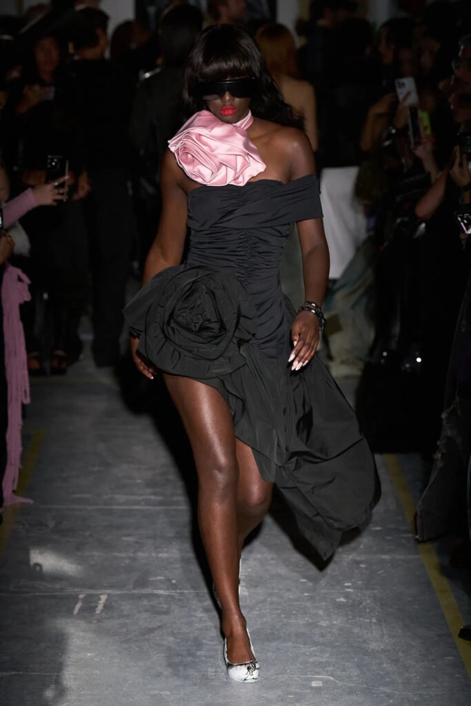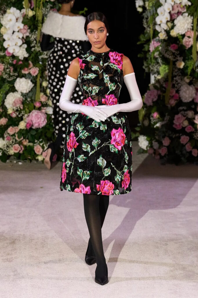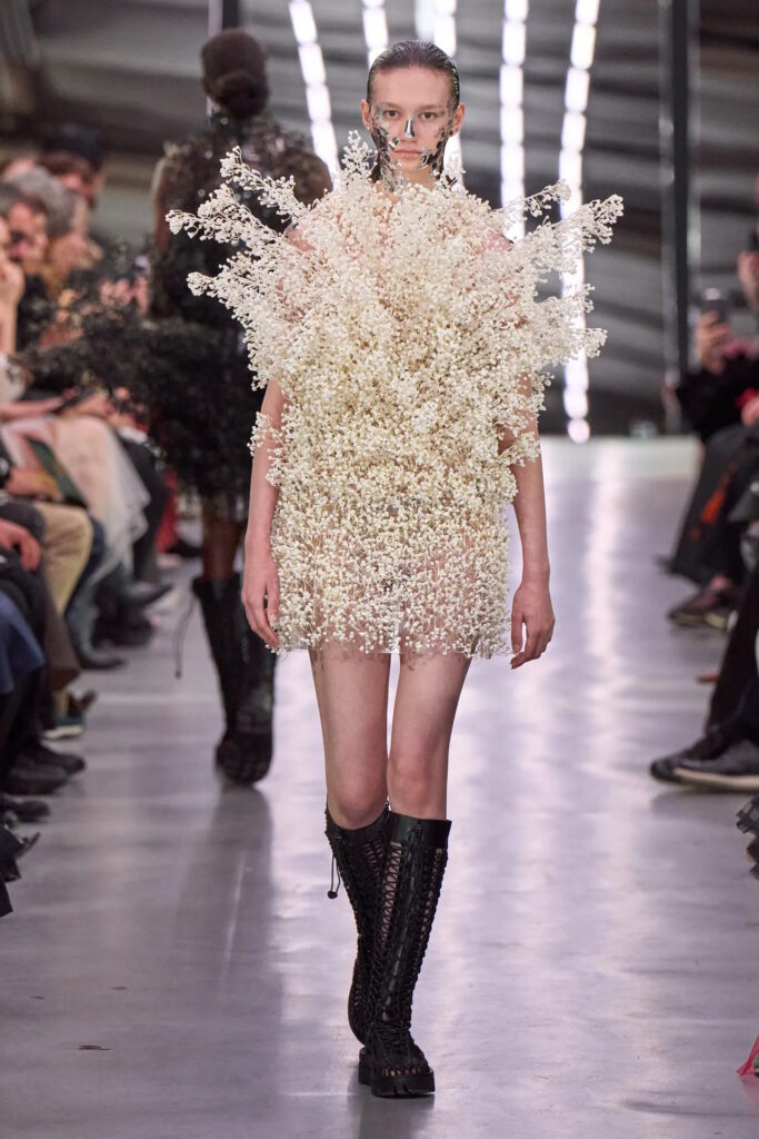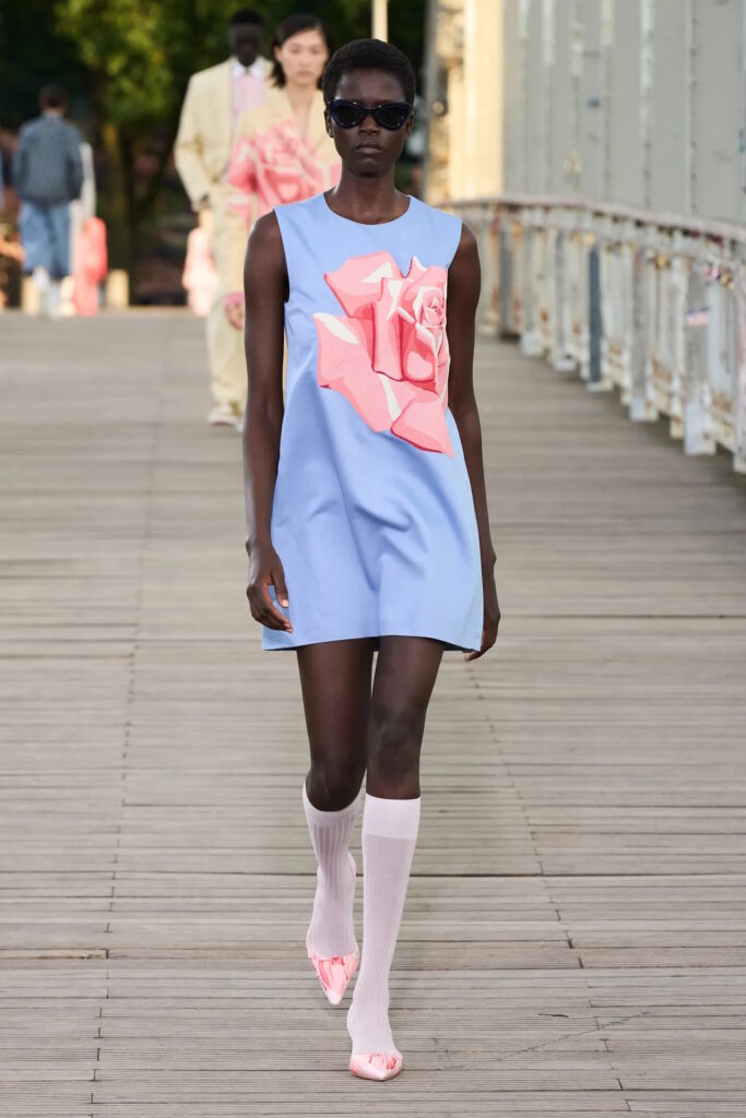 Romance was in the air at Simone Rocha, where fresh, pale pink, long-stemmed roses were trapped between layers of tulle that comprised the prettiest of party dresses. That rose theme curiously persisted across fashion’s four main cities for spring. Olivier Rousteing, feeling philosophical after most of his Balmain collection was stolen several days before his show, quoted Gertrude Stein’s 1913 poem ‘Sacred Emily’ with its famous line “Rose is a rose is a rose” ahead of a floral-bedecked outing; meanwhile Sarah Burton closed out her Alexander McQueen tenure with a collection partly inspired by a blood-red rose and female anatomy. Spanning rose prints, floral embellishment, three-dimensional appliqué, or petal-shaped silhouettes, designers from Rei Kawakubo to Richard Quinn are feeling, uh, thorny.